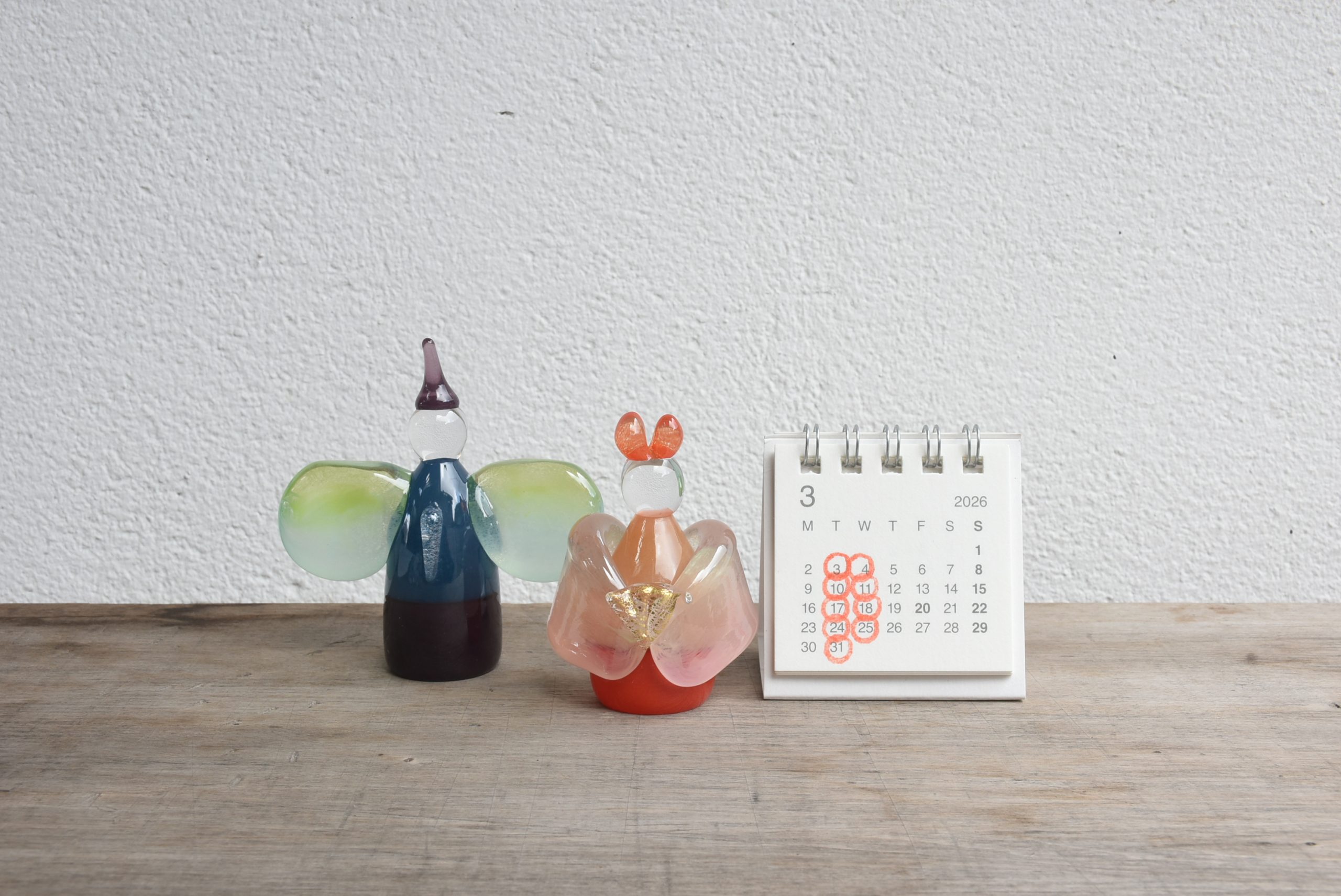9月の休業日は1、2、8、15、16、23、29、30日です。隔週で火、水曜日も休業していますのでご注意ください。9月の4連休は休まず営業しております。営業時間は10:00〜16:00に短縮しています。(カフェのラストオーダー15:40頃まで)吹きガラス体験教室は受付しておりません。