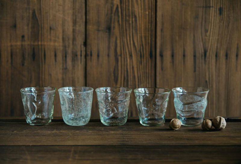 - 宙吹きガラスの技法で小さい工房で1 つ1つ手作りしています。泡の入り方、線の太さ、間隔など全く同じものはできません。サイズ表記も5mm~1cm 程の個体差がありますのでご了承下さい。