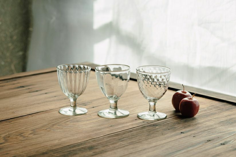口が広くあいていて、りんごの香りを存分に楽しめるワイングラスです。