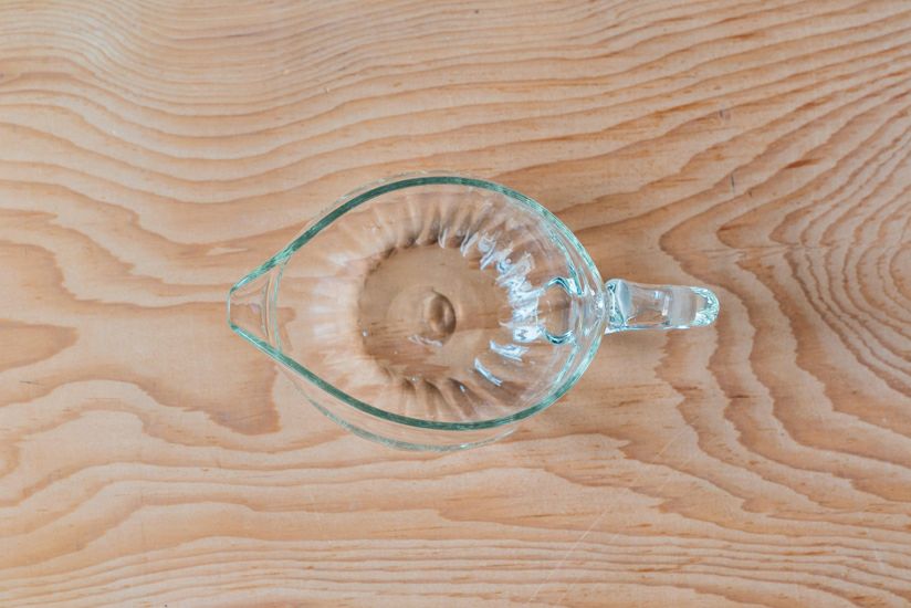 取っ手の付いた丸いドレッシングピッチャーです。