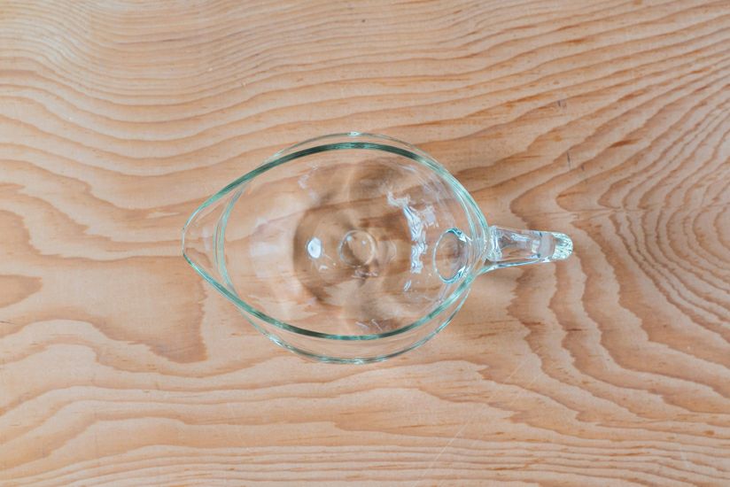 取っ手の付いた丸いドレッシングピッチャーです。