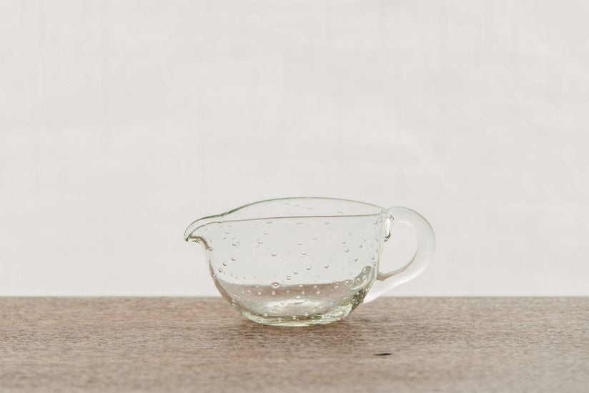 取っ手の付いた丸いドレッシングピッチャーです。
