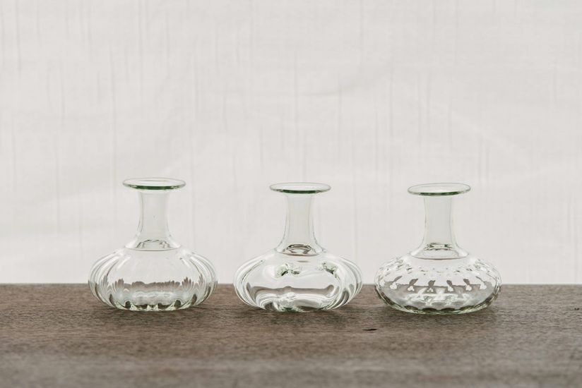 - 宙吹きガラスの技法で小さい工房で1 つ1つ手作りしています。泡の入り方、線の太さ、間隔など全く同じものはできません。サイズ表記も5mm~1cm 程の個体差がありますのでご了承下さい。