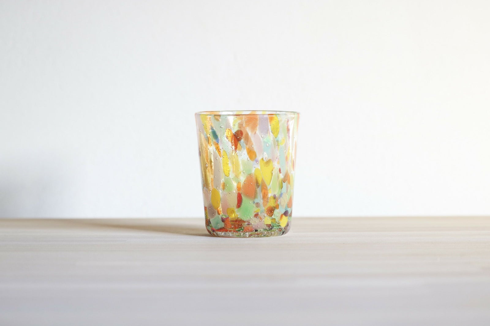 - 宙吹きガラスの技法で小さい工房で1 つ1つ手作りしています。泡の入り方、線の太さ、間隔など全く同じものはできません。サイズ表記も5mm~1cm 程の個体差がありますのでご了承下さい。