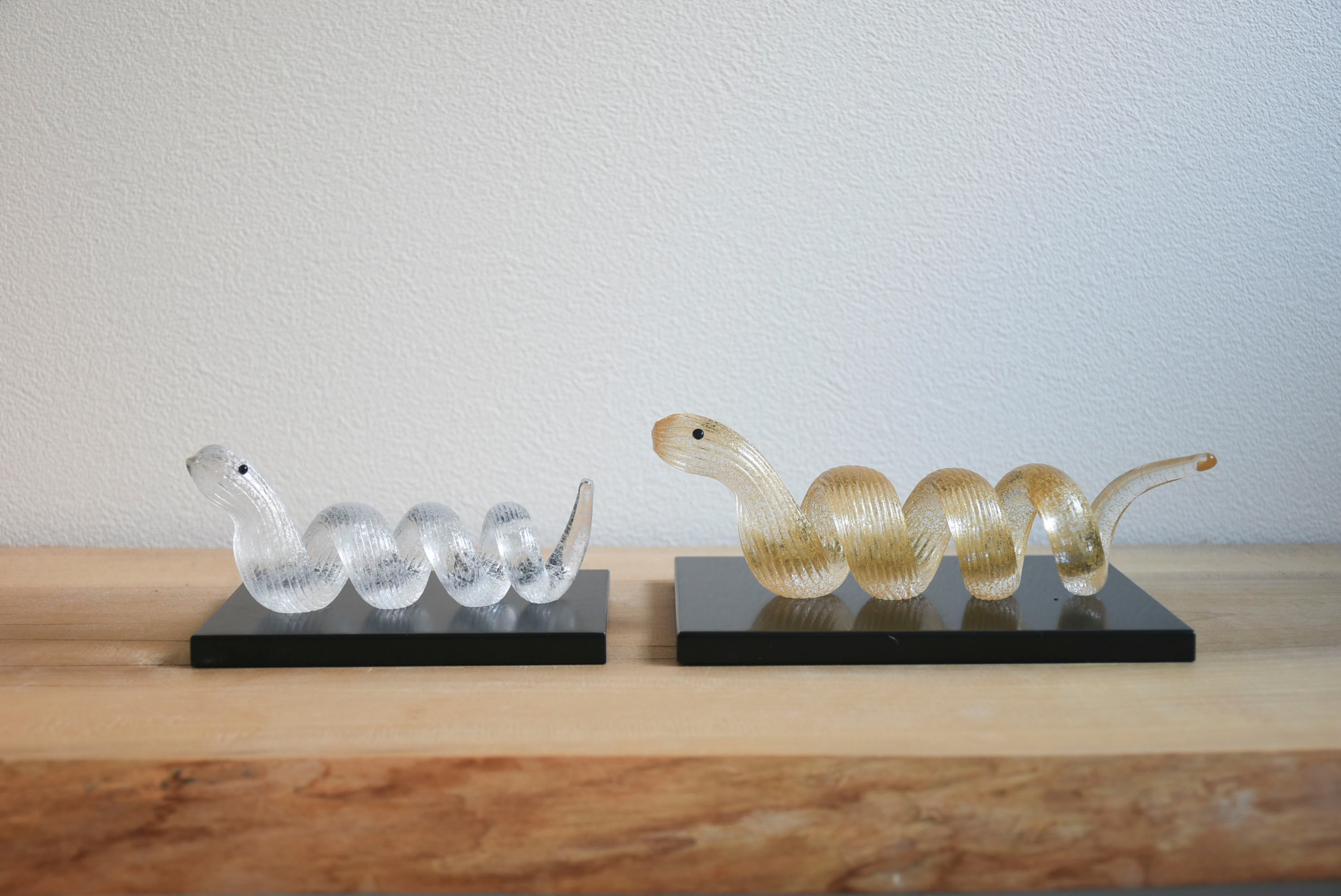 - 宙吹きガラスの技法で小さい工房で1 つ1つ手作りしています。泡の入り方、線の太さ、間隔など全く同じものはできません。サイズ表記も5mm~1cm 程の個体差がありますのでご了承下さい。